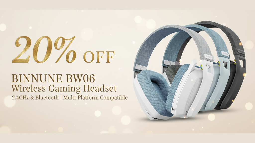 BINNUNE BW06 Wireless Gaming Headset - 2.4GHz & Bluetooth for PS5/PS4/PC